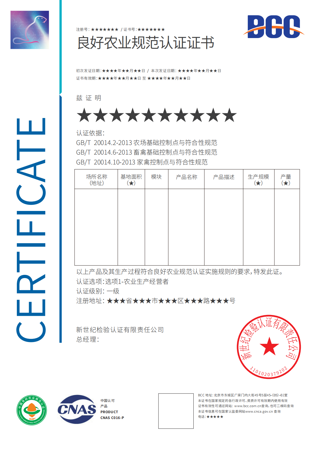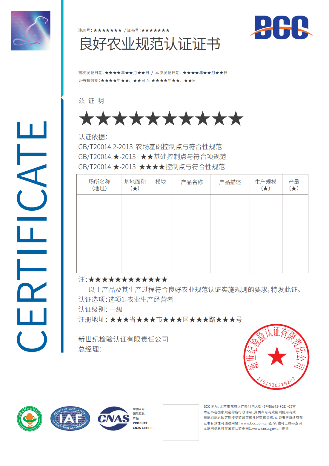 收費是按照《國家計委、國家質(zhì)量技術(shù)監(jiān)督局關(guān)于印發(fā)產(chǎn)品質(zhì)量認證收費管理辦法和收費標準的通知》(計價格【1999】1610號收取認證費用,并依據(jù)中國國家認證認可監(jiān)督管理委員會發(fā)布的《良好農(nóng)業(yè)規(guī)范認證實施規(guī)則》及《BCC良好農(nóng)業(yè)規(guī)范審核人日表》中審核時間表收取費用。