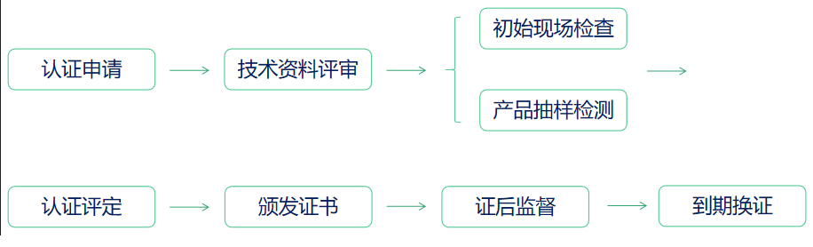 綠色產(chǎn)品認(rèn)證的流程包括:申請(qǐng)——技術(shù)資料評(píng)審、受理——現(xiàn)場(chǎng)檢查、產(chǎn)品抽樣評(píng)審——認(rèn)證決定——證書(shū)發(fā)放——證后監(jiān)督——到期換證