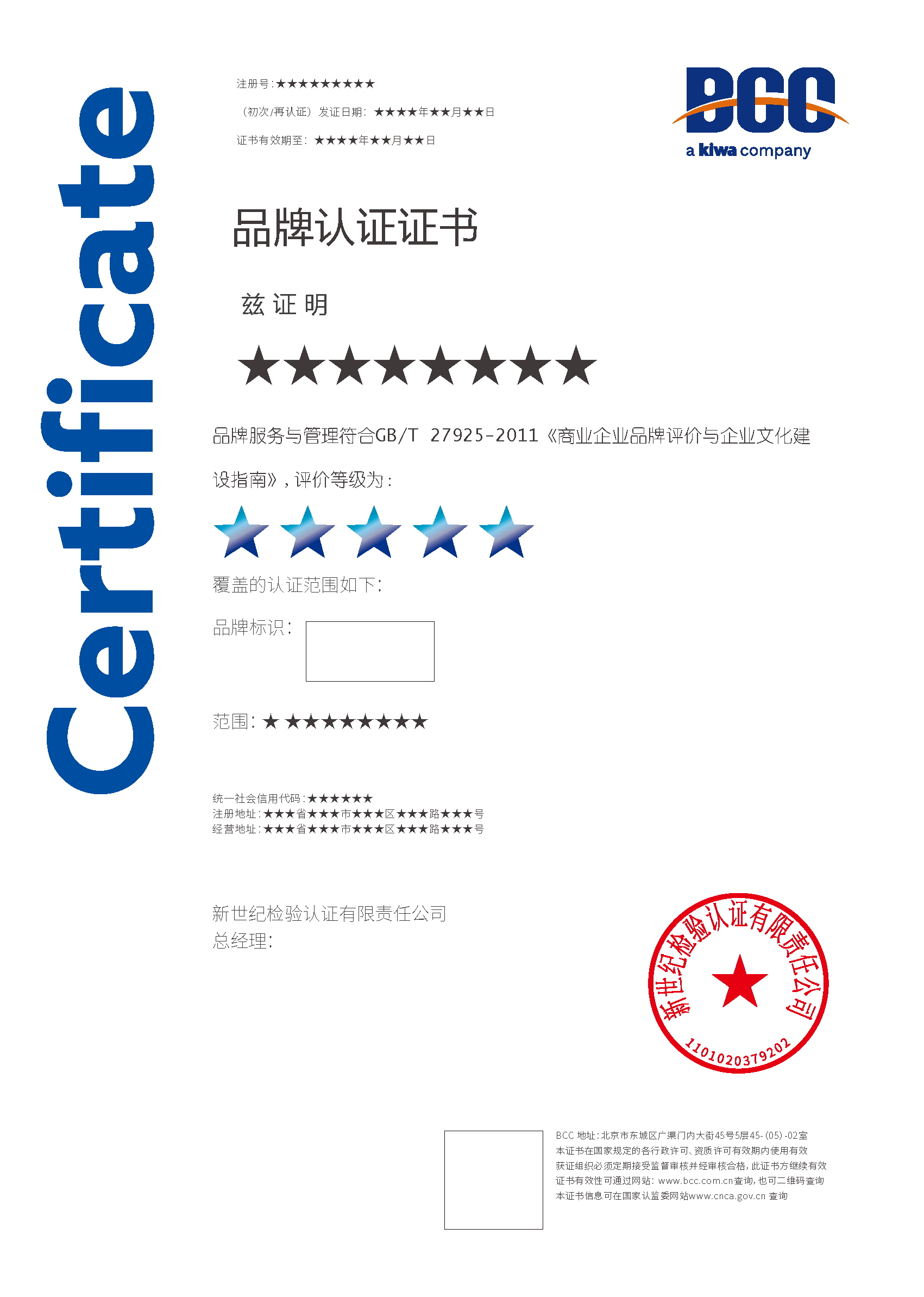 本頁涉及的認(rèn)證服務(wù)中均有對應(yīng)的《認(rèn)證實(shí)施規(guī)則》,BCC擁有其最終解釋權(quán)。任何組織及個(gè)人未經(jīng)BCC許可,不得以任何形式全部或部分使用(法律要求除外)認(rèn)證相關(guān)信息。如需獲取相關(guān)實(shí)施規(guī)則請用以下方式聯(lián)系獲?。弘娫挘?10-58579316 郵箱:fwjs@kiwa.cn