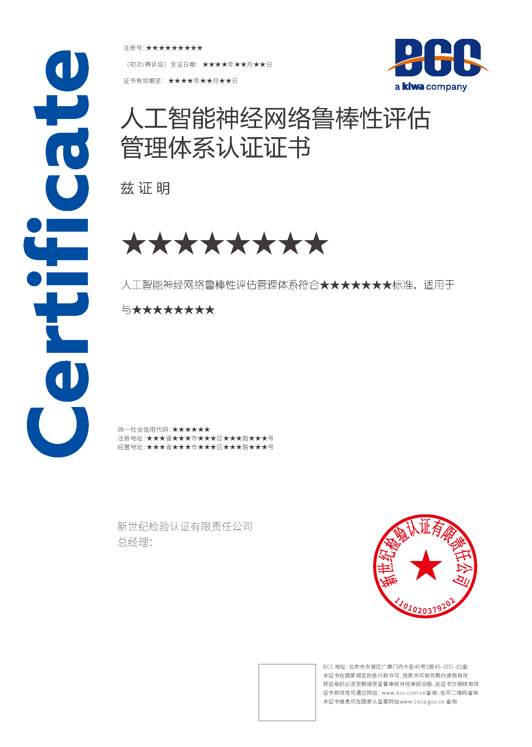 本頁涉及的認(rèn)證服務(wù)中均有對應(yīng)的《認(rèn)證實(shí)施規(guī)則》,BCC擁有其最終解釋權(quán)。任何組織及個(gè)人未經(jīng)BCC許可,不得以任何形式全部或部分使用(法律要求除外)認(rèn)證相關(guān)信息。如需獲取相關(guān)實(shí)施規(guī)則請用以下方式聯(lián)系獲?。弘娫挘?10-58579316   郵箱:fwjs@kiwa.cn