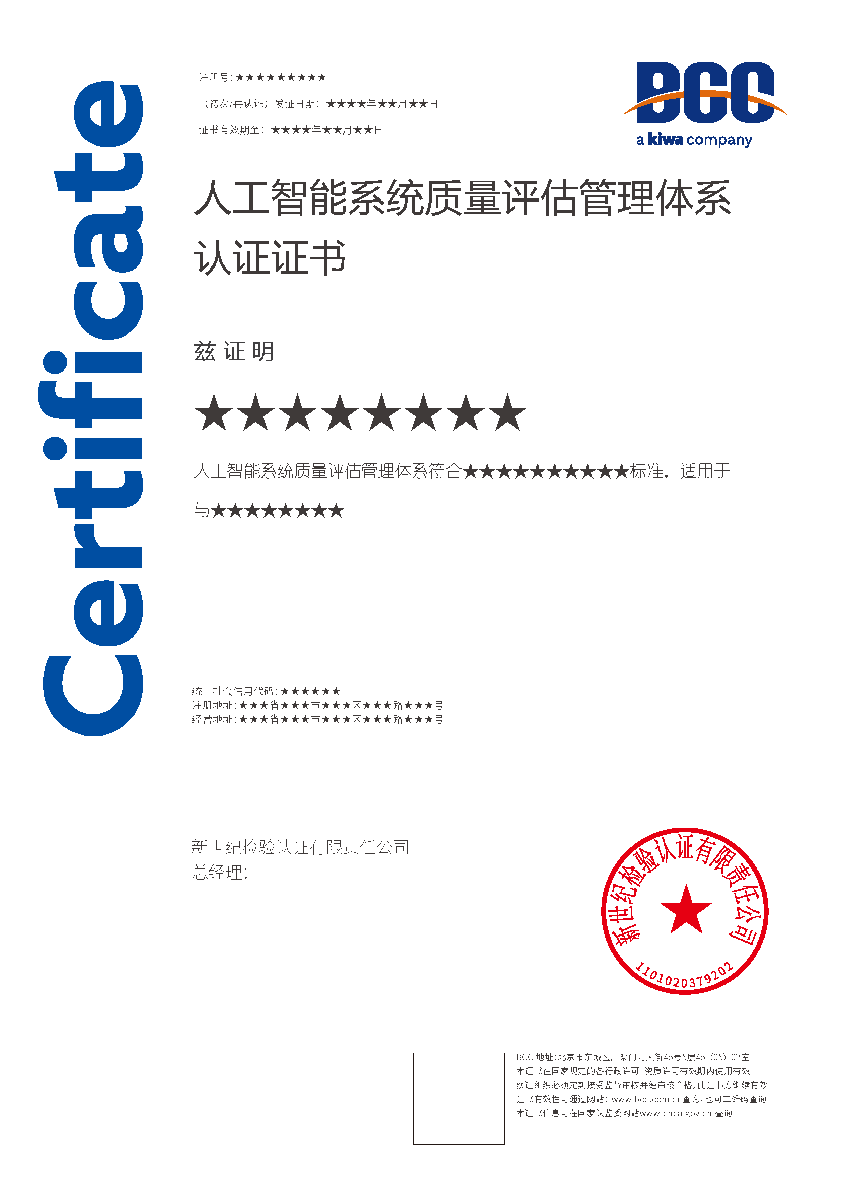 本頁涉及的認證服務(wù)中均有對應(yīng)的《認證實施規(guī)則》,BCC擁有其最終解釋權(quán)。任何組織及個人未經(jīng)BCC許可,不得以任何形式全部或部分使用(法律要求除外)認證相關(guān)信息。如需獲取相關(guān)實施規(guī)則請用以下方式聯(lián)系獲?。弘娫挘?10-58579316 郵箱:fwjs@kiwa.cn
