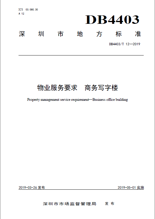 深圳市市場監(jiān)管局自2016年開始籌備物業(yè)服務認證工作,歷經(jīng)三年多,在深圳標準認證聯(lián)盟和標準技術研究院的大力支持下,中航物業(yè)和SGS通標標準技術服務有限公司經(jīng)過行業(yè)走訪調研、專業(yè)論證、條款編寫、標準評審,終于在2019年5月1日聯(lián)合發(fā)布了首個服務類深圳認證標準DB 4403/T 12—2019《物業(yè)服務要求 商務寫字樓》,標準引入了先進的服務接觸理論和服務質量評價模型,從客戶感知和企業(yè)自身管理兩個角度提出服務要求和管理要求,結合深圳市商務寫字樓的先進技術和先進方法,具有較強的科學性和適用性,達到了國內領先、國際一流水平。認證按照深圳標準認證聯(lián)盟發(fā)布的首個服務認證實施規(guī)則實施。