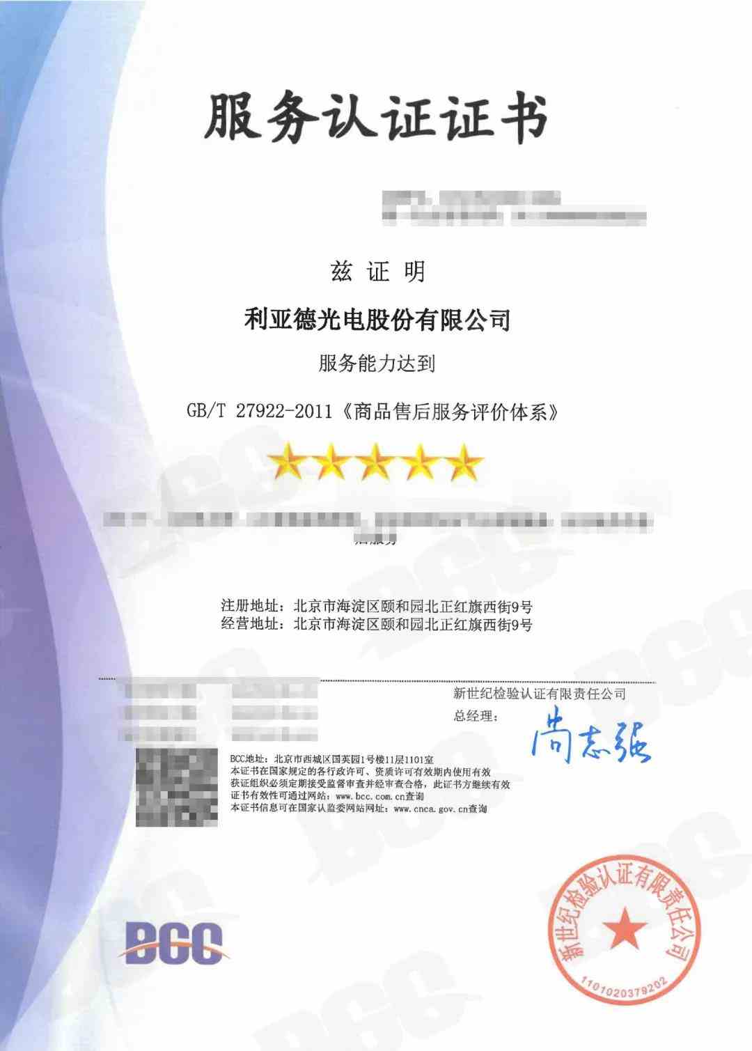 利亞德秉持“高品質(zhì)、優(yōu)服務(wù)、重誠(chéng)信、盡職責(zé)、服務(wù),一切讓顧客滿意”的經(jīng)營(yíng)理念,不斷提升企業(yè)的產(chǎn)品質(zhì)量和服務(wù)質(zhì)量,以優(yōu)質(zhì)服務(wù)能力獲BCC頒發(fā)的商品售后服務(wù)認(rèn)證五星證書,為未來進(jìn)軍家電市場(chǎng)的戰(zhàn)略布局奠定了堅(jiān)實(shí)基礎(chǔ)。