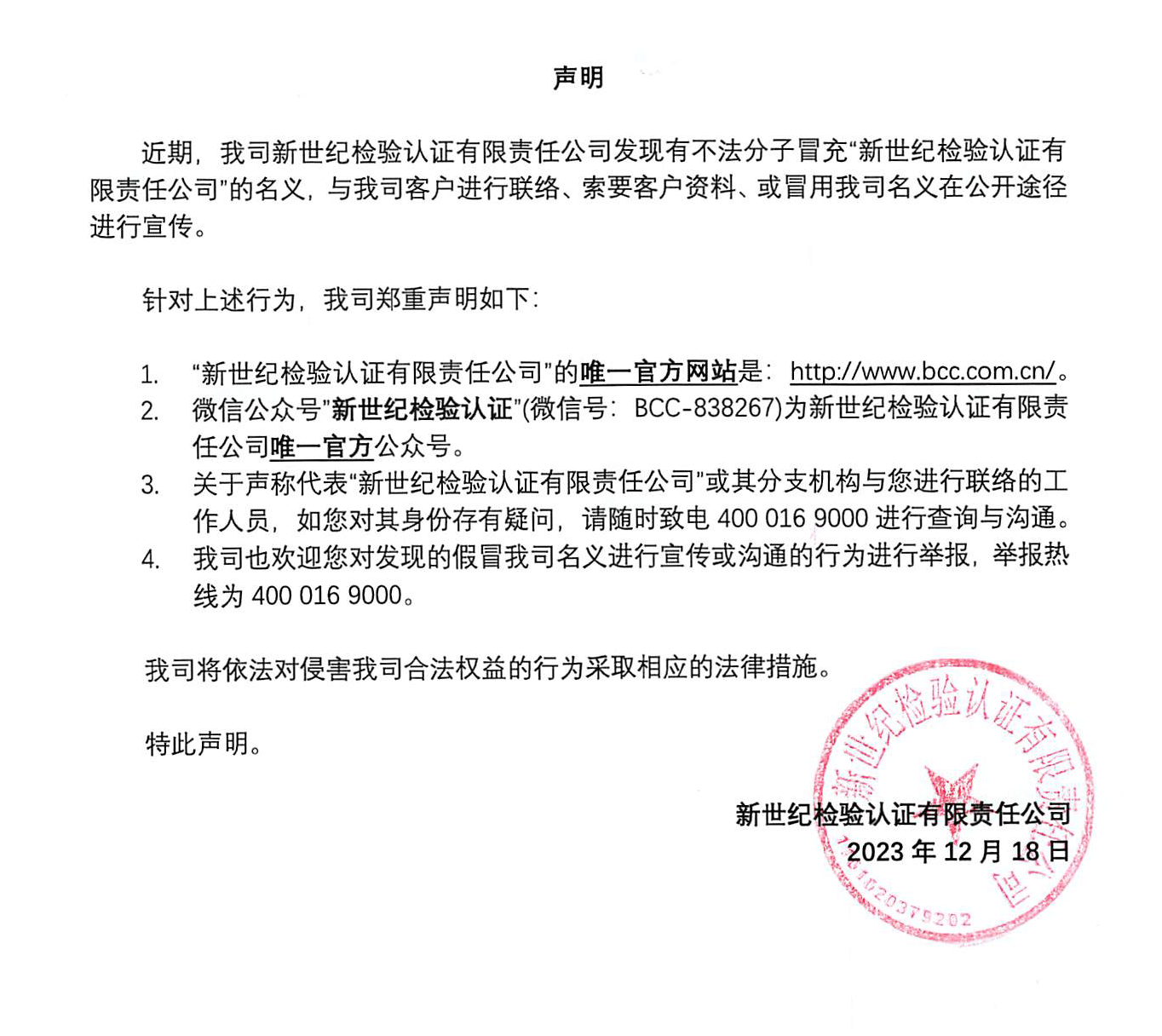 Copyright @2019 新世紀檢驗認證有限責(zé)任公司 版權(quán)所有