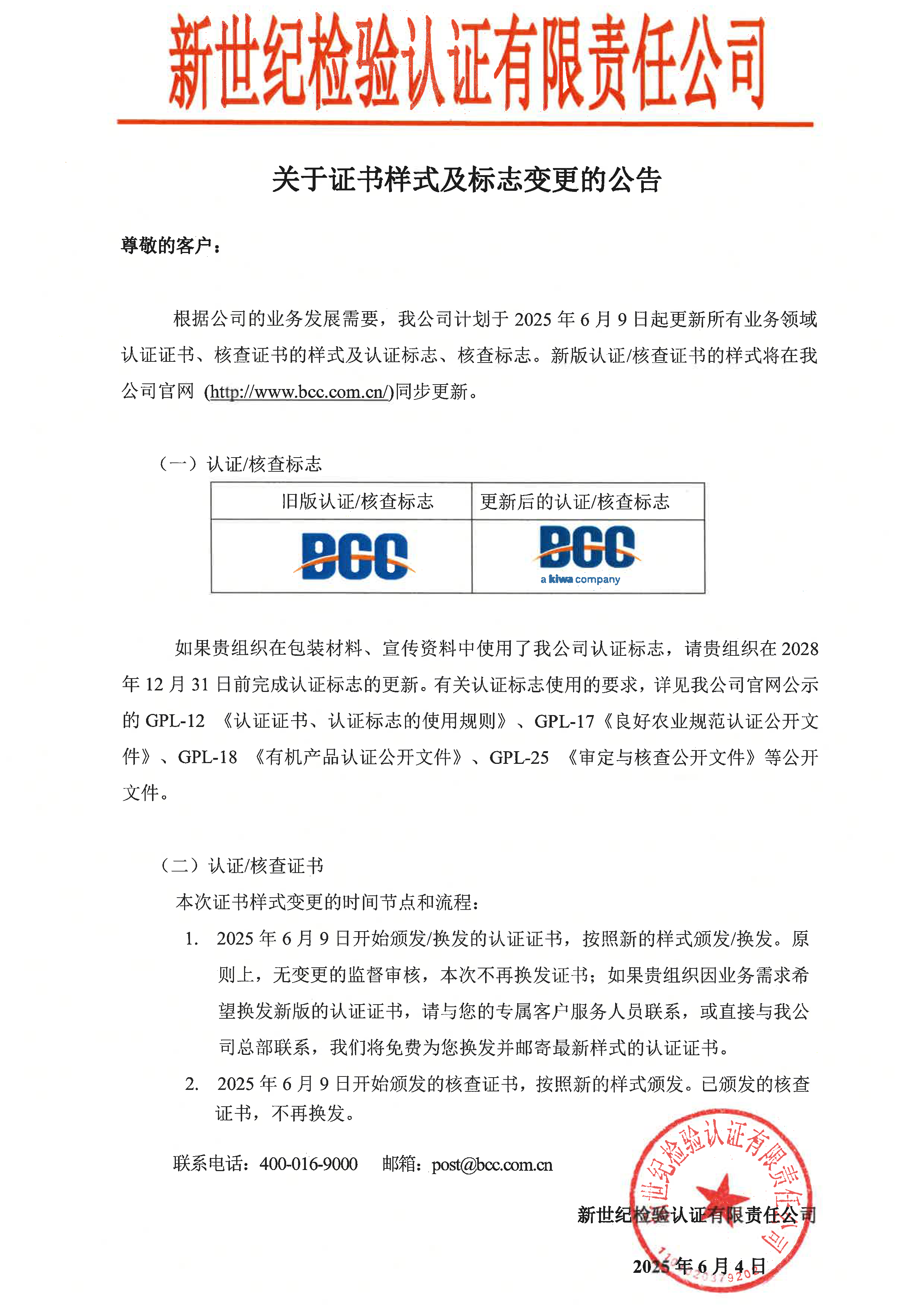 關(guān)于證書樣式及標(biāo)志變更的公告
