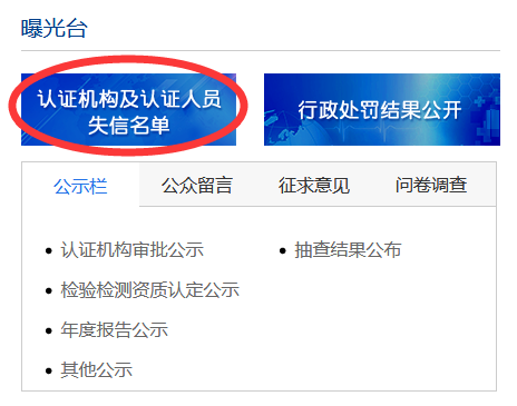 機構(gòu)曝光情況也參見國家認(rèn)證認(rèn)可委員會網(wǎng)站,如下圖: